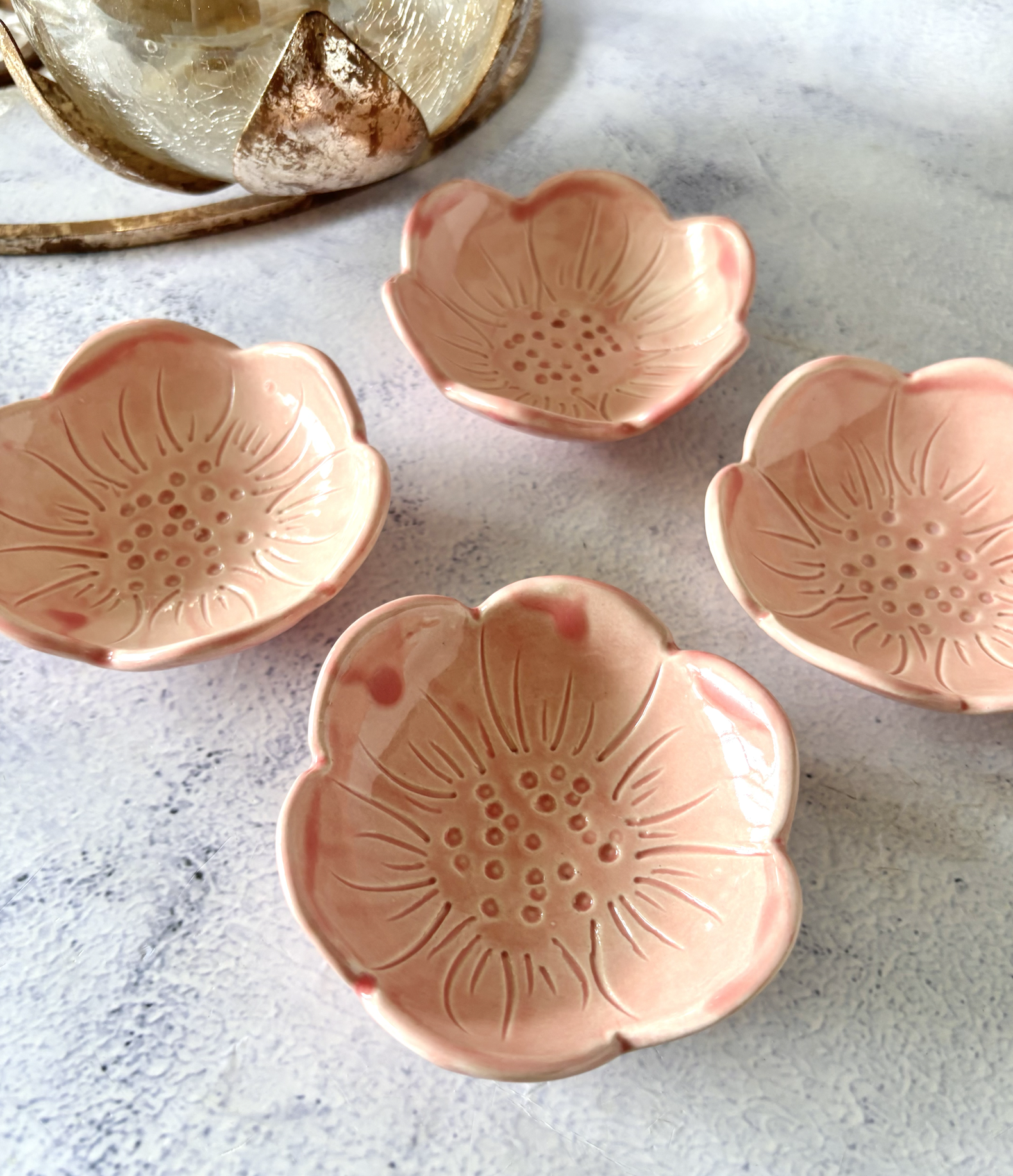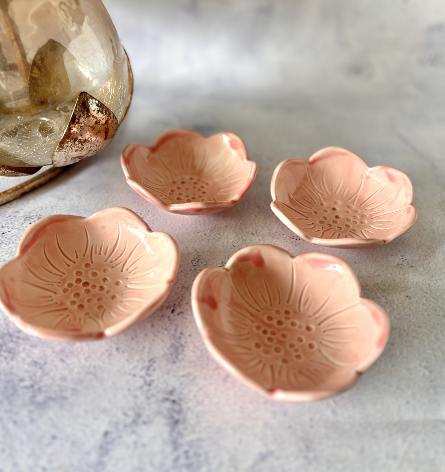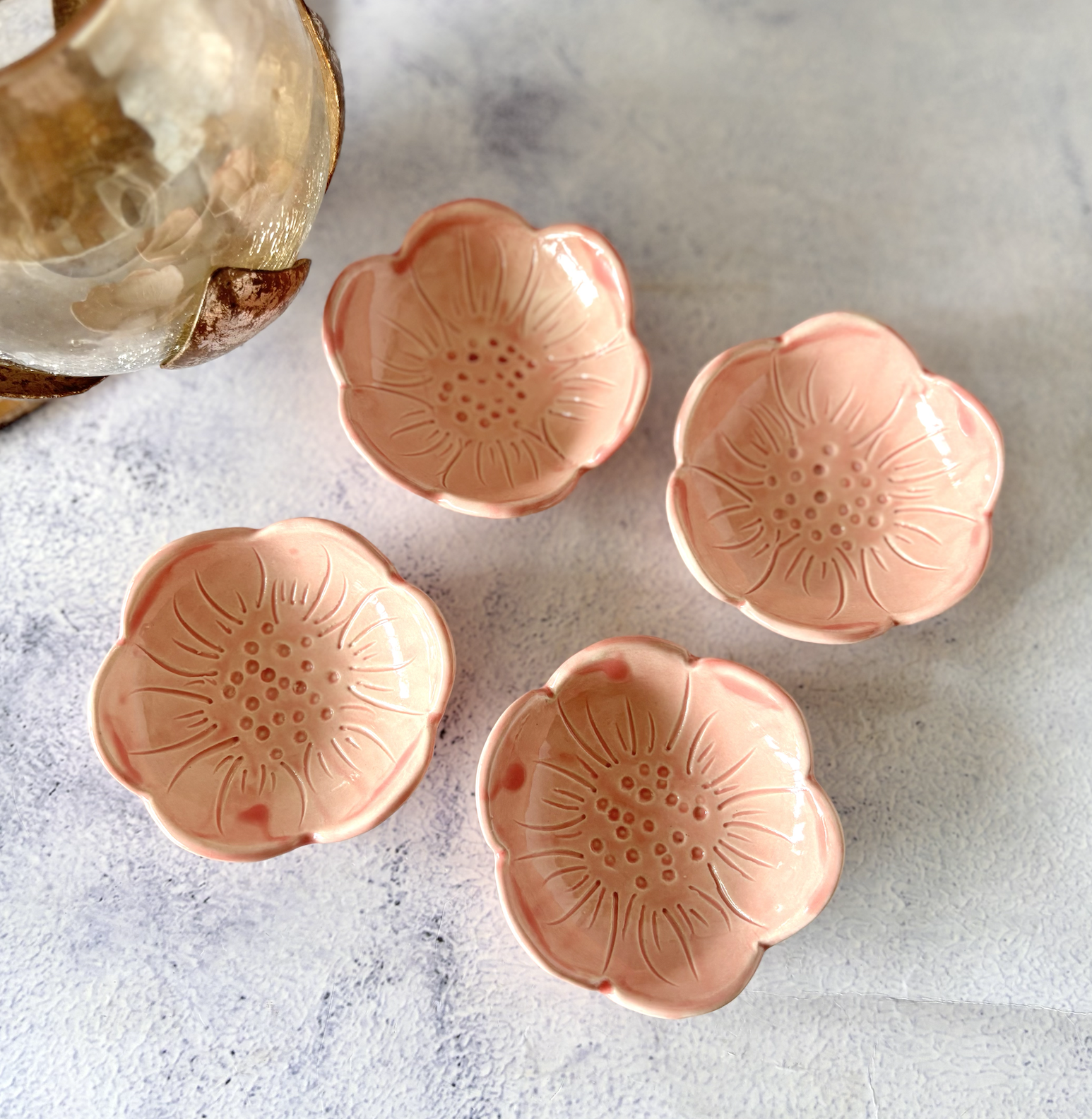 Handmade Ceramic Coral Flower Trinket Dish- Set of 4